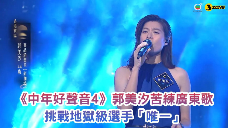 《中年好聲音4》郭美汐苦練廣東歌 挑戰地獄級選手「唯一」