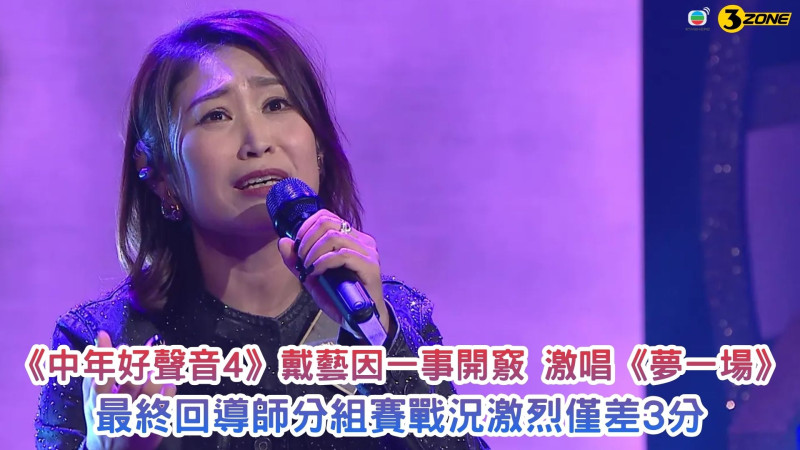 《中年好聲音4》戴藝因一事開竅 激唱《夢一場》 最終回導師分組賽戰況激烈僅差3分