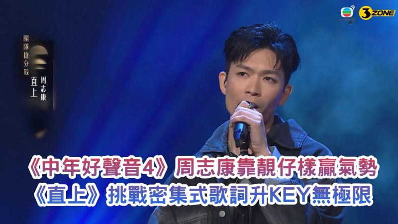 《中年好聲音4》周志康靠靚仔樣贏氣勢 《直上》挑戰密集式歌詞升Key無極限 海兒激讚:參賽以來最好一次