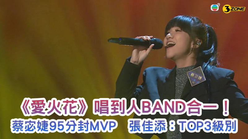 《愛火花》唱到人Band合一!蔡宓婕95分封MVP 張佳添:Top3級別