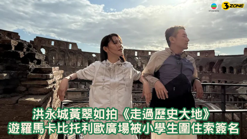 洪永城黃翠如拍《走過歷史大地》遊羅馬卡比托利歐廣場被小學生圍住索簽名