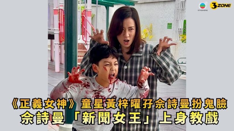 《正義女神》童星黃梓曜孖佘詩曼扮鬼臉 佘詩曼「新聞女王」上身教戲