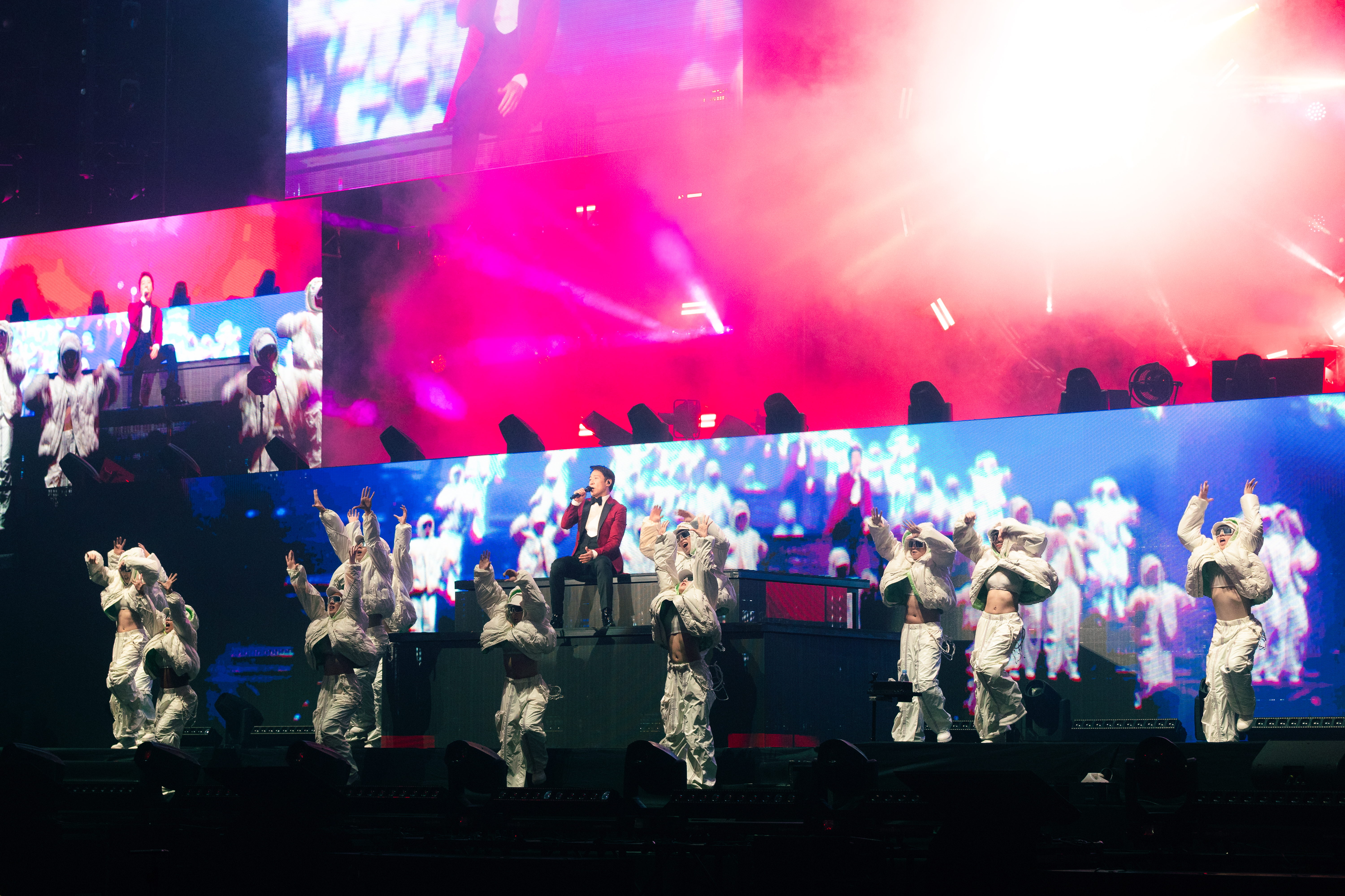 Throughout the evening, Leon rewarded fans for their unwavering support by performing a series of his timeless hits. He switched between three outfits more precisely, three jackets transitioning from sleek black to cool blue and finally vibrant red, each representing a different facet of his stage charisma. Every change drew enthusiastic cheers from the crowd.