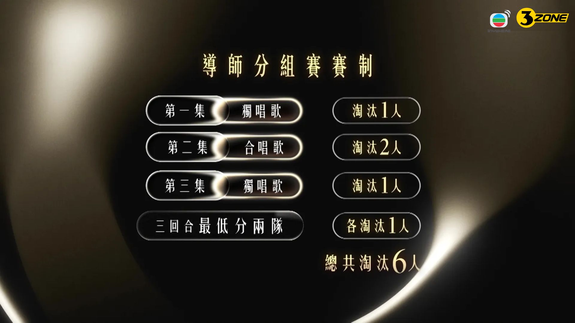 - 第一集為獨唱,最低分隊伍淘汰1人。
