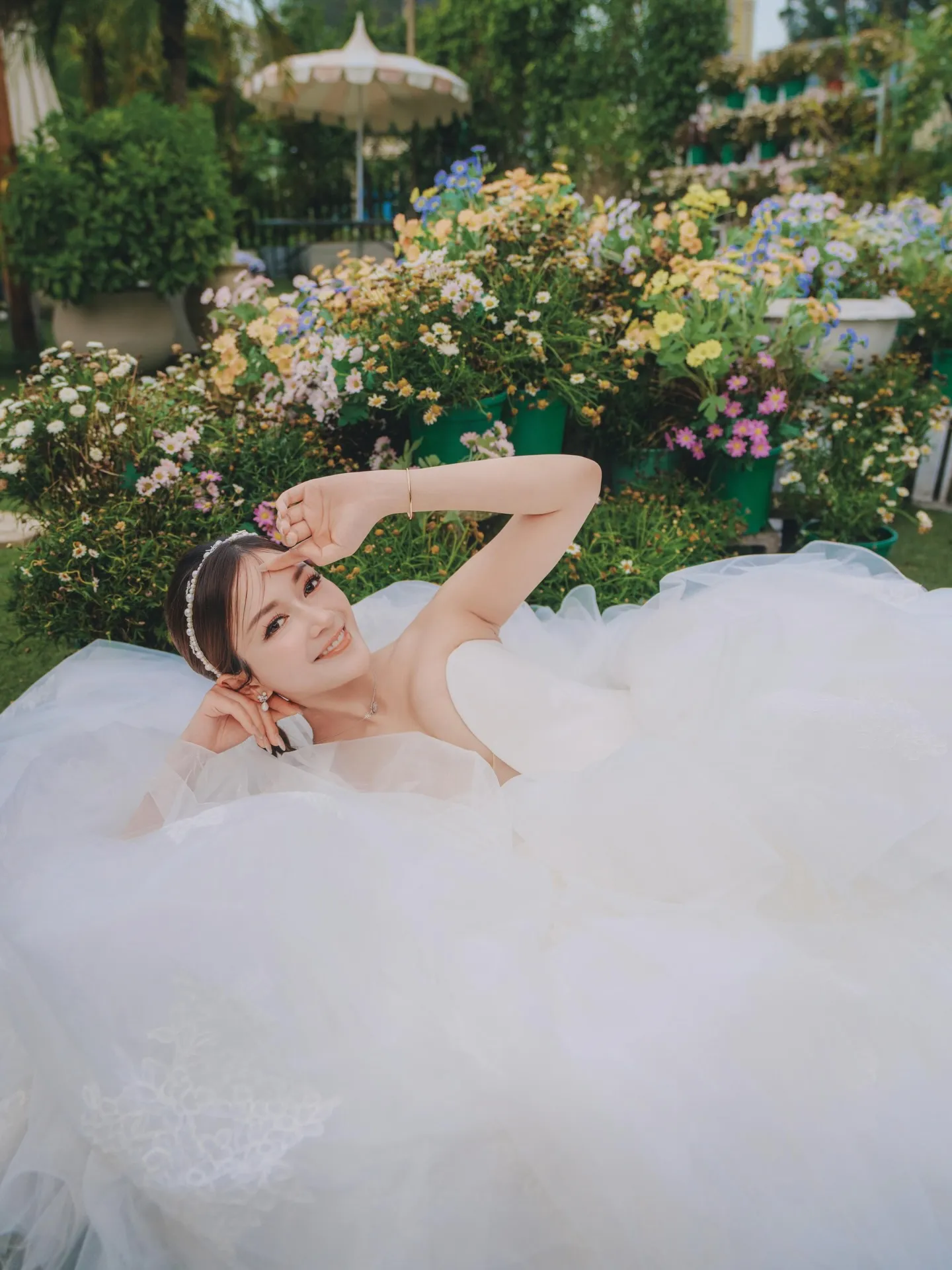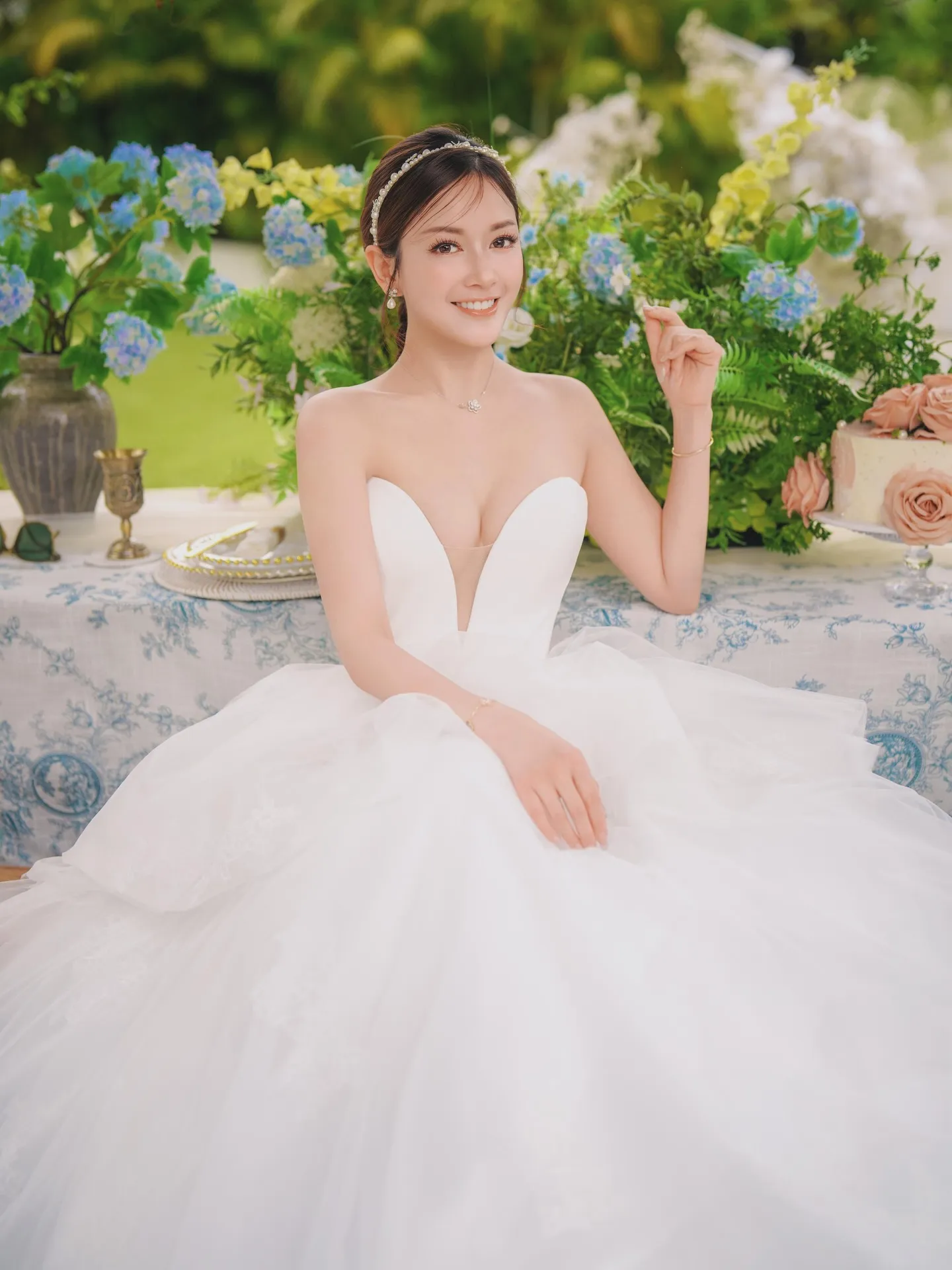相中可見鍾晴穿上超低胸露肩晚裝,由擺甫士到躺下展現身形曲線,白滑香肩在園林美景襯托下,整個人化身仙子般吸睛度爆燈。