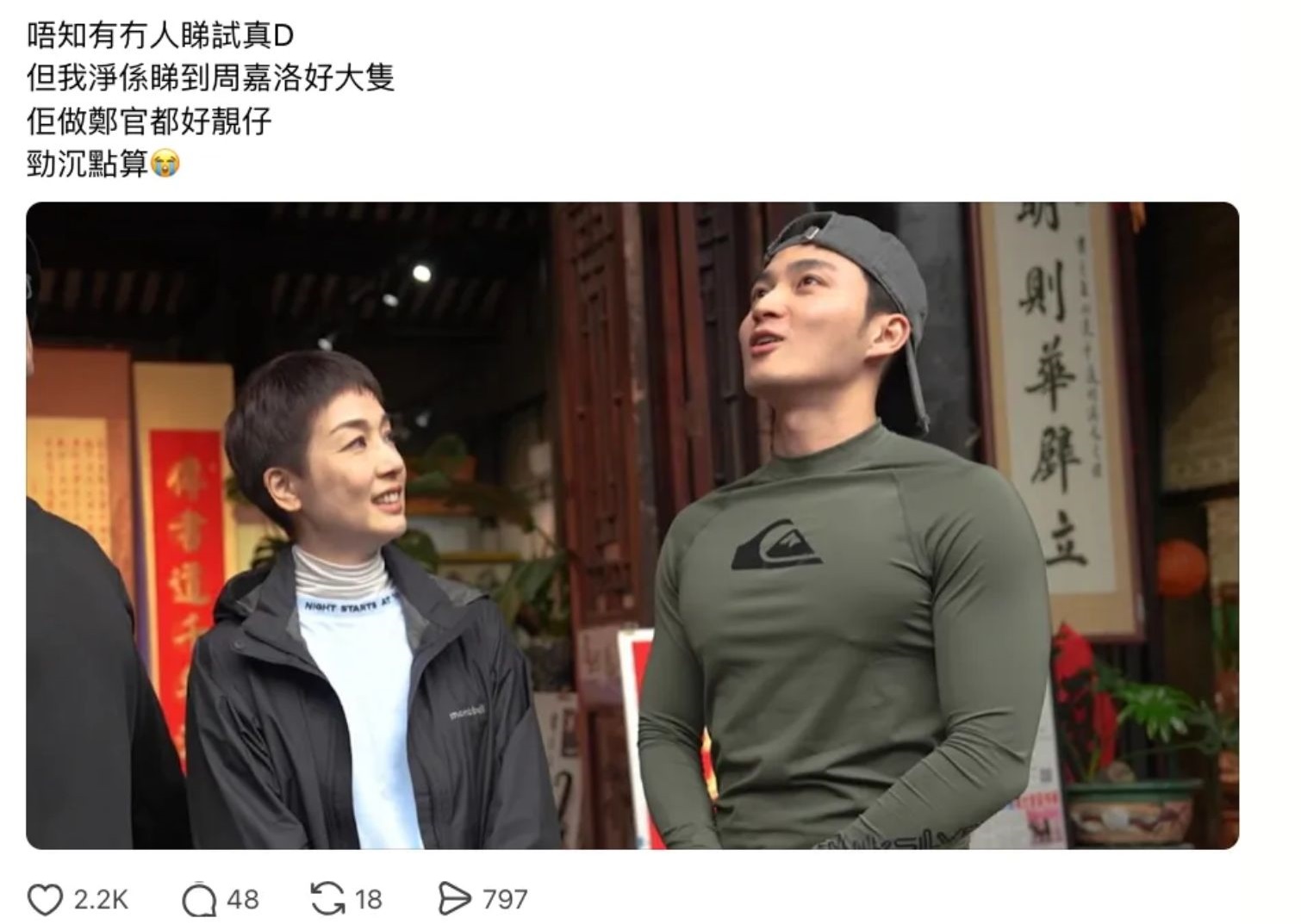 有網民更喺社交平台發文笑言:「唔知有冇人睇試真D,但我淨係睇到周嘉洛好大隻,佢做鄭官都好靚仔,勁沉點算。」仲一針見血指明自己只係因為周嘉洛夠「吸睛」就忍唔住追看。